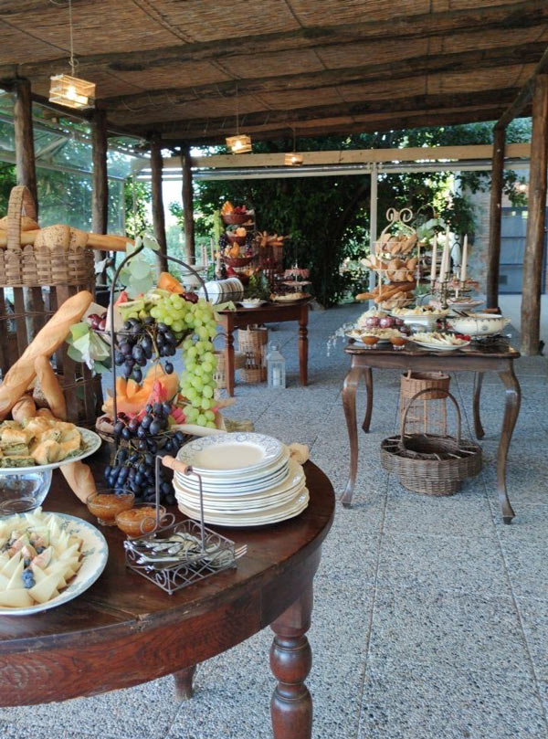 Nella pergola della location Stefania e Cristina hanno allestito un buffet in completo stile vintage.